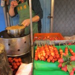 早速駐車場を探したのですが、この日は台湾の連休に当たっていた為、なかなか空きが見つからず。メイン通りからはちょっと離れた、「一次100元(1回100元)」というアバウトな看板(時間の制限はないのか!?)が出ていた駐車場にとめて、海産物店が並ぶ通りへ歩いて向かいました。